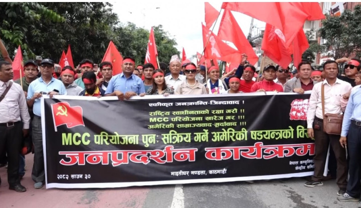 एमसीसीविरुद्ध विप्लव नेतृत्वको नेकपाको काठमाडौंमा प्रदर्शन